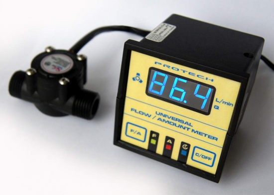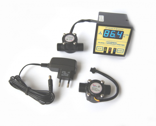 Universal Flow / Amount METER  - miernik przepływu chwilowego oraz całkowitego - cyfrowe urządzenie mierzące przepływ z zakresu 0,1...99,9 litra na minutę oraz przepływ całkowity do 99,9 L lub 999 litrów