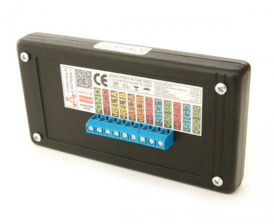 - Konfigurowalny kanał zmieniający swój stan po przekroczeniu ustawionego przepływu całkowitego - typu "otwarty kolektor" do 60V/0,8A lub przekaźnik do 50V/0,5A (dozowanie cieczy)